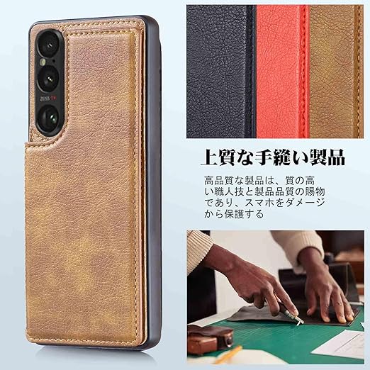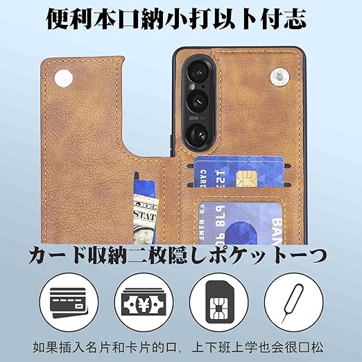 【Aqier】For Xperia1 VII/SO-51F/XQ-FS44/SOG15/A501SO 用 背面ケース(レトロブラウン)エクスペリア1vii ケースカード入れ 片手操作 バック?カバー ソニーsog15 薄い茶 a