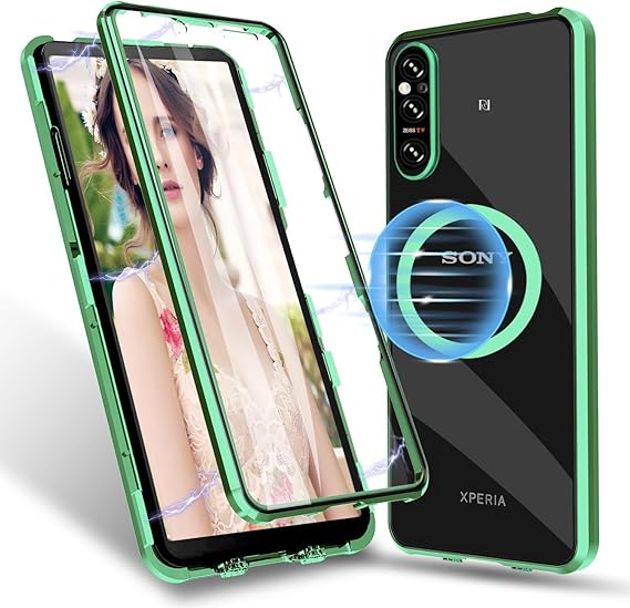Guizzcg So ny X-peria 1 VII ケース [対応 Mag-safe アクセサリー] 強化ガラス レンズ保護 ケース ロック付き手机? アルミバンパー 金属フレーム 透明ガラス 360°全面保護磁気吸,緑 a