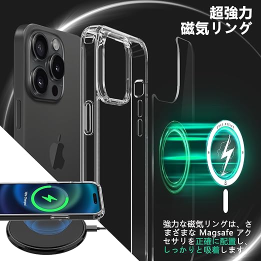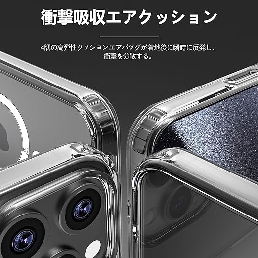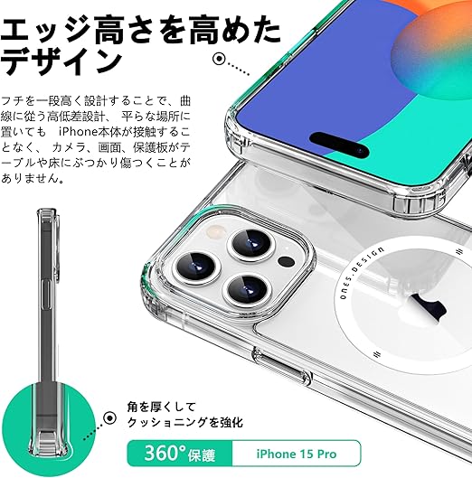 ONES iPhone15Pro 超強磁性MagSafe対応ケース 超透明 米軍MIL規格 超耐衝撃 エアバッグ 〔 高靭性強化PCガードボード ? 高弾性衝撃吸収TPUバンパー 〕『 画面 ・ レンズ保護、滑り止め、Qi充電 』 超軽量 持ちやすい 黄変防止 クリスタル クリア カバー a