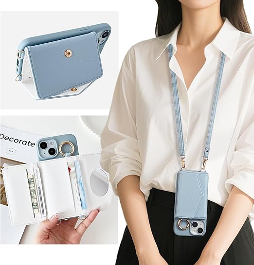 YURAMYRAI Xperia 10 VII ケース 背面手帳型 対応 Xperia 10 VII スマホケース ショルダー タイプ 携帯ケース 背面カード収納 全面保護カバー 耐衝撃 落下防止 すり傷防止 ミストブルー a