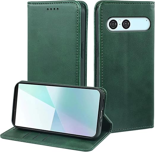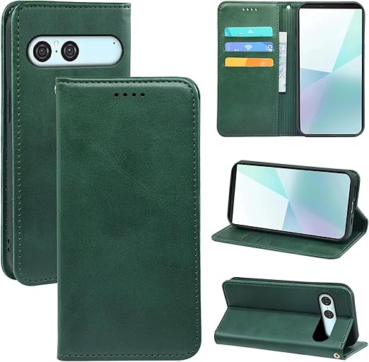に適用するXperia 10 VII ケース 手帳型 ノートブック型携帯電話保護カバー多機能携帯電話ホルスター (グリーン) a