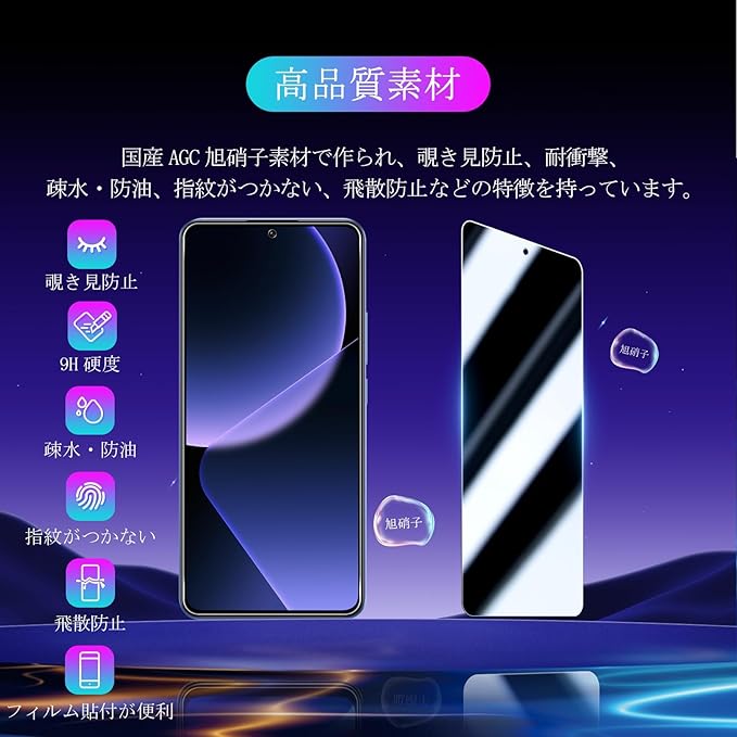 対応 Xiaomi 13T / 13T Pro ガラスフイルム 覗き見防止 【2枚セット-AGC旭硝子素材】 xiaomi 13t pro ガラスフイルム のぞき見防止 シャオミ 13T / 13T Pro 液晶 保護フィルム のぞき見 プライバシーフィルム 強化ガラス さらさら ケース 【硬度9H 耐衝撃 飛散防止 超薄 気泡ゼロ 3D Touch対応 高感度 撥油性 指紋防止 超耐久 】 TZ-2FKMI13T a