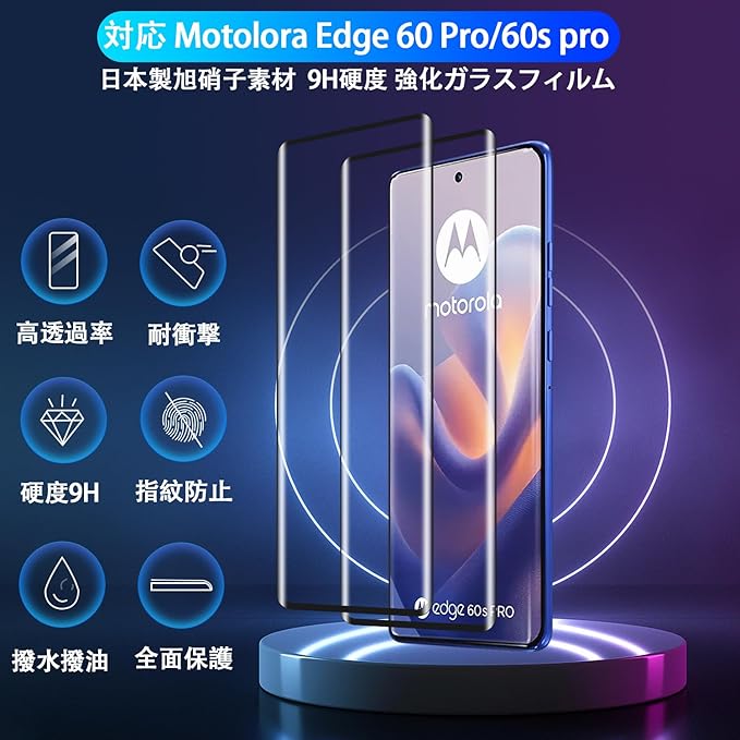 【2+2枚セット】 対応 Motolora Edge 60 Pro / 60S Pro ガラスフィルム 2枚 + レンズ保護フィルム 2枚 指紋認証 対応 モトローラ edge 60 pro / 60S pro フィルム 強化ガラスフィルム ケース 【 硬度9H 日本旭硝子製 】 対応 Edge 60 Pro / 60S Pro 保護フィルム キズ防止 耐衝撃 飛散防止 全面保護 3D Touch対応 厚さ0.26 極薄タイプ 高感度タッチ 気泡ゼロ 自動吸着 貼り付け簡単 用 Moto Edg a