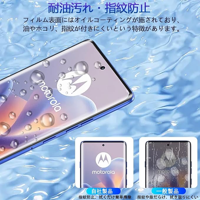 【対応機種・簡単に貼り付け】 対応 Motolora Edge 60 Pro / 60S Pro フィルム ガラスフィルム 専用に設計されています。素材に日本製の旭硝子を採用。 フィルム自体のシリコン自己吸着層により、位置を合わせて上から軽く置くだけで気泡が入ることなく誰でも簡単、綺麗に貼ることができます。 【指紋認証の設定手順】 携帯電話システム更新し、携帯電話の設定でタッチ感度を上げ、最後に指紋を再入力してください。