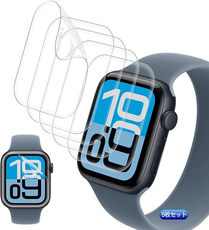 【5枚セット】 対応 Apple Watch series SE 3 44MM フィルム TPU製 高透過率 用 アップルウォッチSE 3 44MM 保護フィルム 耐衝撃 飛散防止 用 Watch series SE 3 44MM ガラスフィルム 全面保護 3D Touch対応 高感度タッチ 気泡ゼロ 自動吸着 貼り付け簡単 対応 アップルウォッチ SE 第3世代 フィルム a