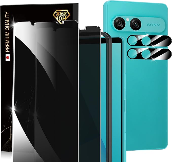 【覗き見防止】 Sony Xperia 10 VII 用 ガラスフィルム(2枚) カメラフィルム(2枚) 保護フィルム ガイド枠付き 日本旭硝子採用 硬度10H強化ガラス 指紋防止 プライバシー保護 エクスペリア10 VII 用 4枚入 a