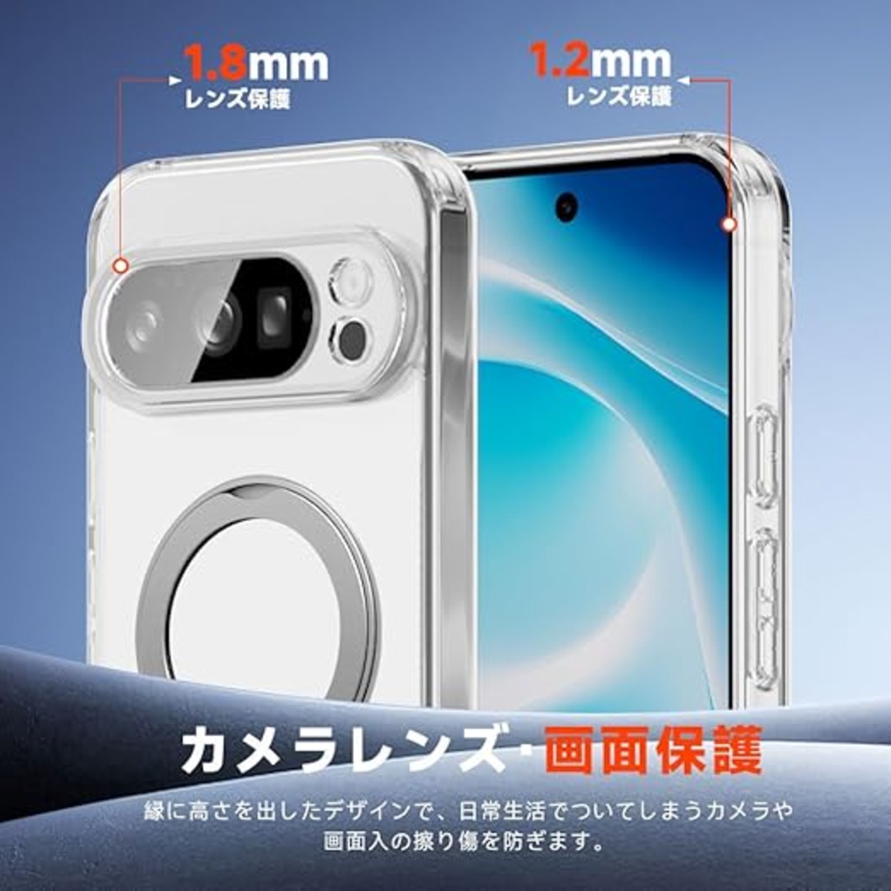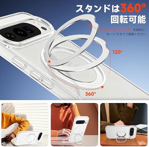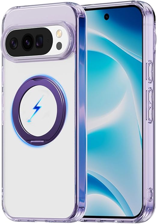 Google Pixel 10 / Pixel 10 Pro 用 ケース Magsafe対応 ピクセル10 プロ カバー 360°回転スタンド 米軍MIL規格【MARR】スマホケース 携帯ケース ワイヤレス充電 車載ホルダー 対応 ストラップ穴付き 透明 指紋防止 黄?防止(クリアパープル) a