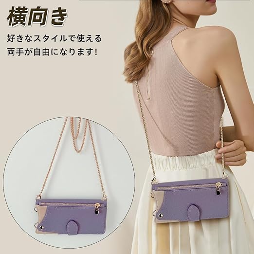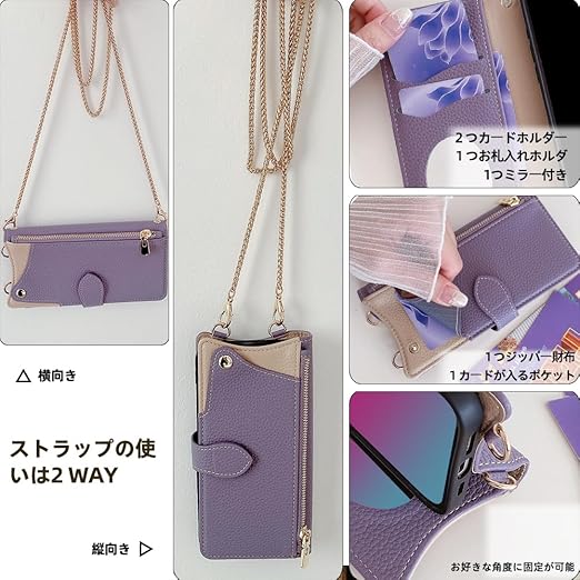 QANKISIS 用の Xperia 10 VII ケース 手帳型 財布型カバー Xperia 10 VII 本革ケース マグネット留め エクスペリア10 vii スマホケース 鏡付き 銭入れ マグネット式 化粧鏡 カード収納 斜めがけ ストラップ 首掛け PUレザー 肩掛け 横置きスタンド機能 携帯カバー 全面保護 ファッション 6.1インチ(パープル) a