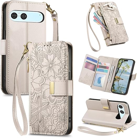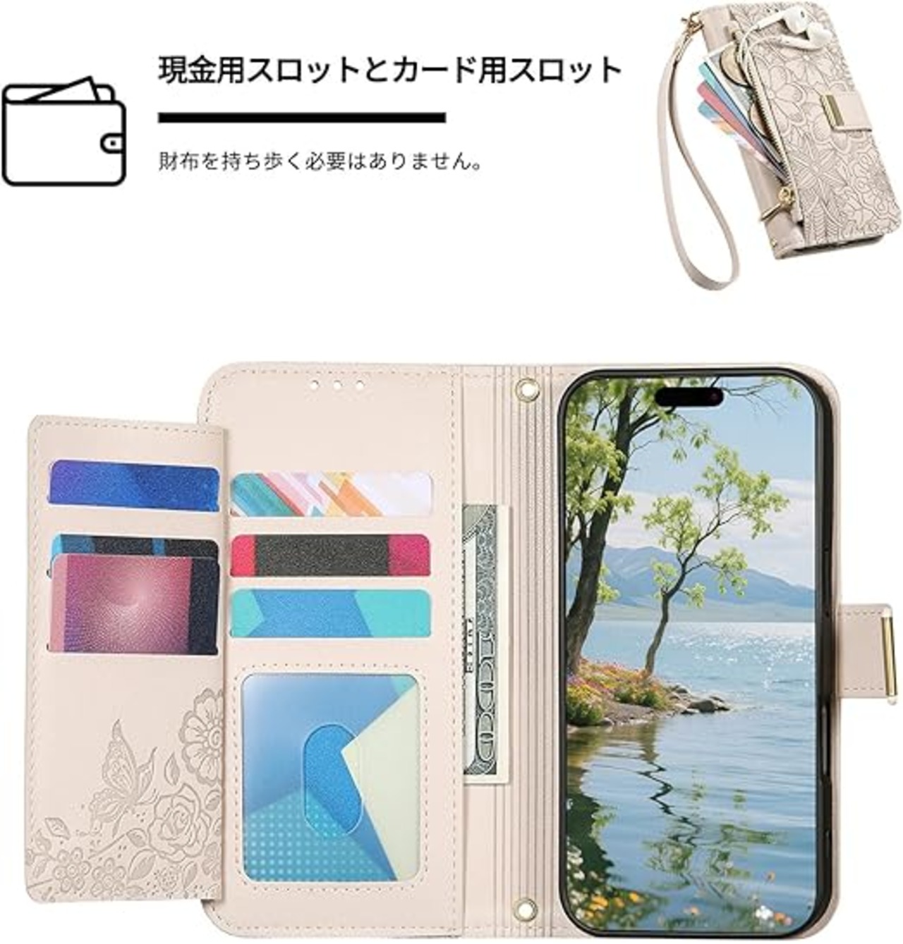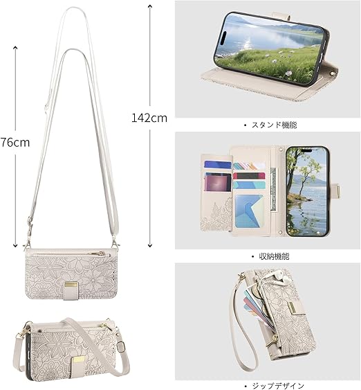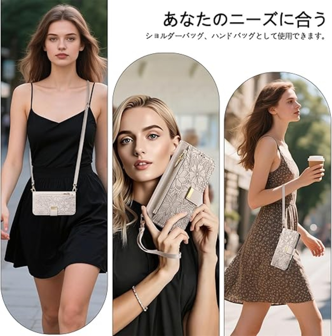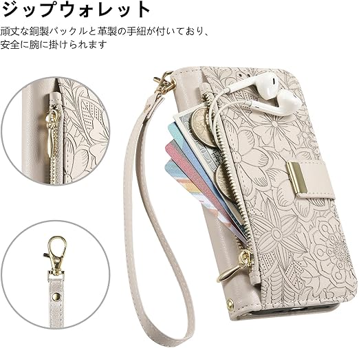 TOO&SOO 適用 xperia 10 vii ケース 手帳型 肩掛け エクスペリア10 vii ケース ショルダー xperia 10vii カバー 斜め掛け 人気 エクスペリア10vii 携帯ケース 女性 斜めがけ 携帯カバー 花柄 肩がけ ストラップ付き 小銭入れ カード収納 スタンド機能 シンプル お洒落 衝撃吸収 - ベージュ a