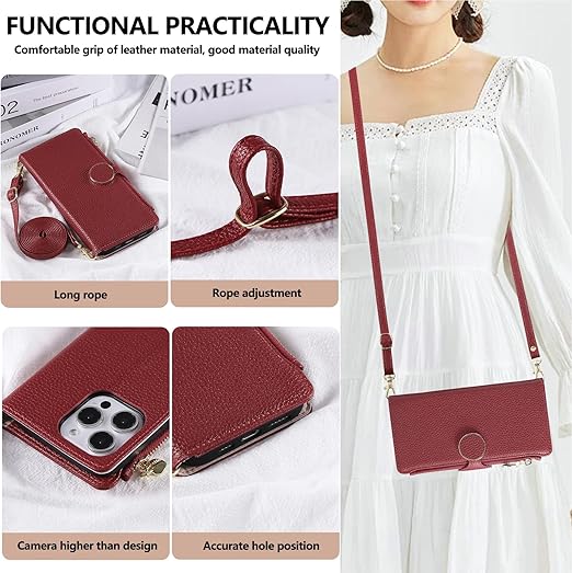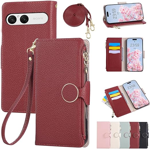 Rosbtib 用の xperia 10 VII ケース 手帳型 ショルダー 財布型カバー エクスペリア10 VII ケース 手帳型 おしゃれ ファスナー型 小銭入れ カード収納 SO-52F 携帯カバー xperia10vii 手帳型ケース 手首/肩掛けストラップ付 マグネット式 スタンド機能 エクスペリア10vii スマホケース 可愛い シンプル 女性 人気 肌触り良い 全面保護(レッド) a