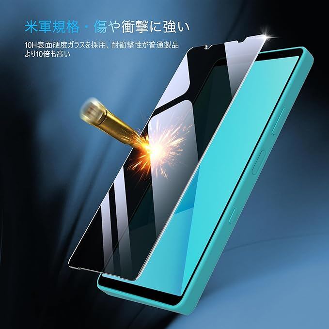 VizGuard Xperia 10 VII ガラスフィルム 覗き見防止 指紋認証対応 日本旭硝子採用 硬度10H 耐衝撃 指紋防止 プライバシー保護 ガイド枠付き エクスペリア10VII 用 フィルム 2枚入り a