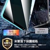 【硬度10H超え・圧倒的な耐衝撃力】日本AGC社製強化ガラス基材を使用し、14種類の先端加工技術を駆使することで、米軍MIL規格の2倍厳しい試験条件をクリアしています。スマートフォンがカバンの中で鍵などの鋭いものにぶつかっても傷が付きにくく、スマホの画面をしっかり保護します。