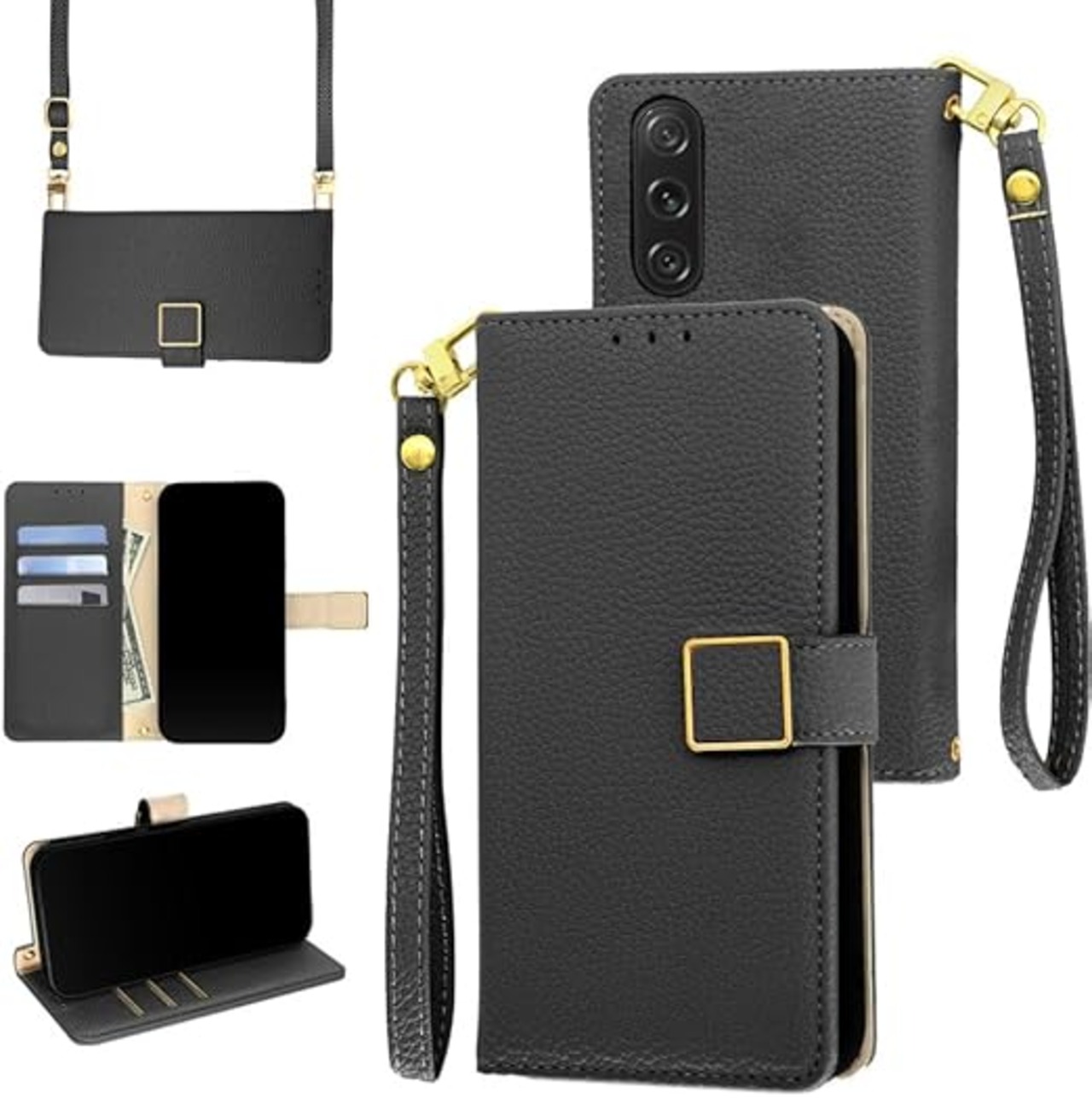 Xperia 1 VII ケース 手帳型 ショルダー エクスペリア1 vii マーク7 SO-51F/XQ-FS44/SOG15 財布型 カバー ストラップ長+短2本付き 肩掛け 斜めがけ 女性 おしゃれ ロングストラップ カード収納 横置き 上質な手触り 耐汚れ気質 肌感レザー 防指紋 耐久性 贈り物 ブラック a