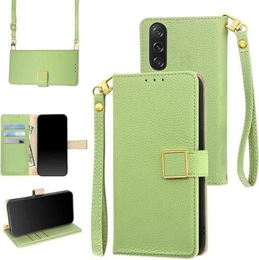 Xperia 1 VII ケース 手帳型 ショルダー エクスペリア1 vii マーク7 SO-51F/XQ-FS44/SOG15 財布型 カバー ストラップ長+短2本付き 肩掛け 斜めがけ 女性 おしゃれ ロングストラップ カード収納 横置き 上質な手触り 耐汚れ気質 肌感レザー 防指紋 耐久性 贈り物 グリーン a