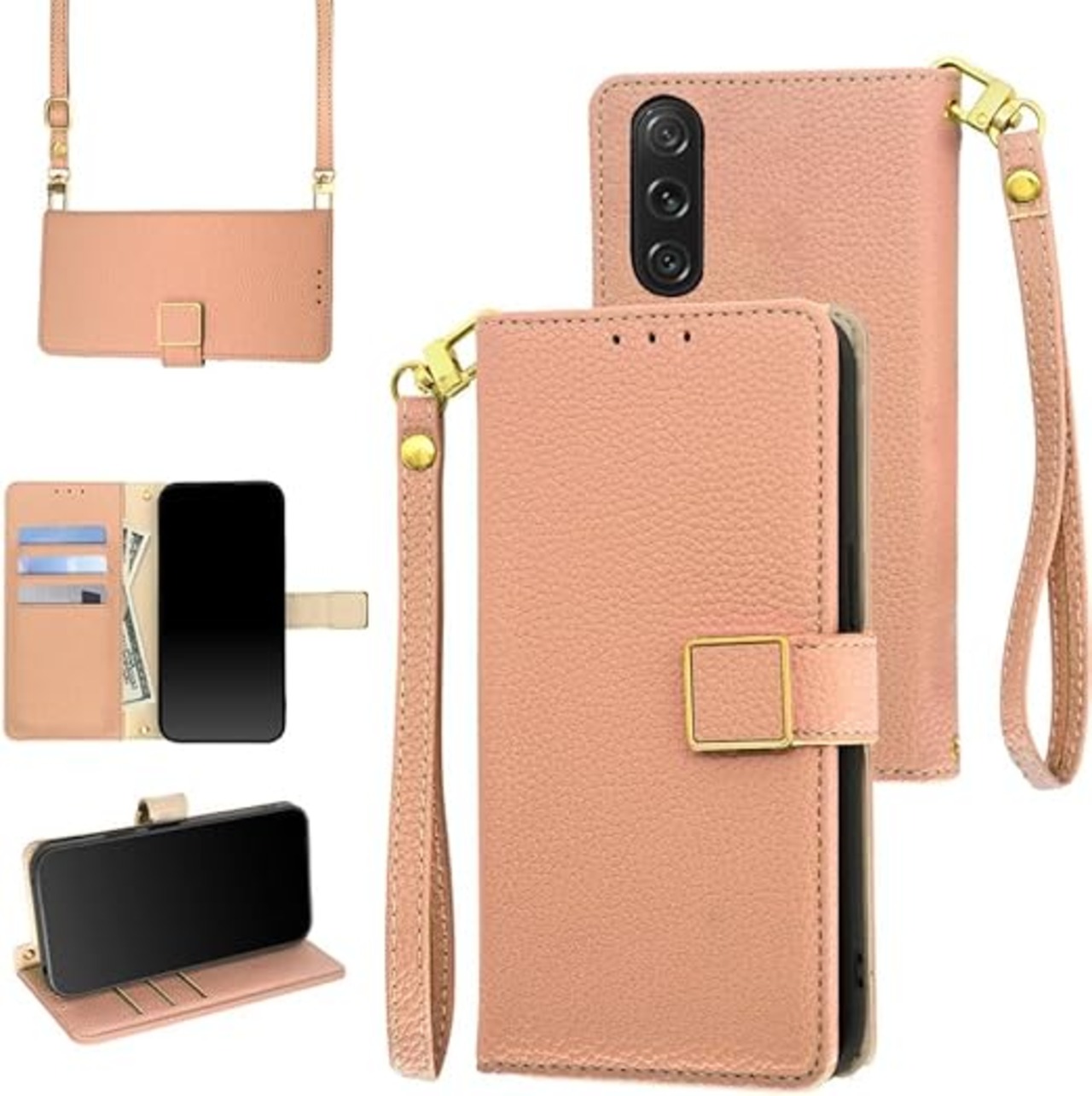 Xperia 1 VII ケース 手帳型 ショルダー エクスペリア1 vii マーク7 SO-51F/XQ-FS44/SOG15 財布型 カバー ストラップ長+短2本付き 肩掛け 斜めがけ 女性 おしゃれ ロングストラップ カード収納 横置き 上質な手触り 耐汚れ気質 肌感レザー 防指紋 耐久性 贈り物 ピンク a
