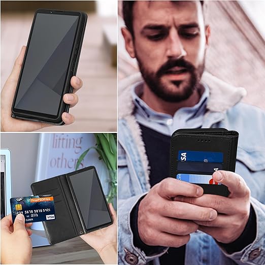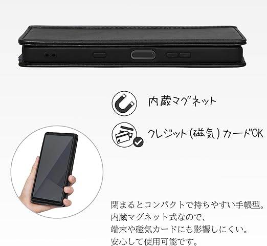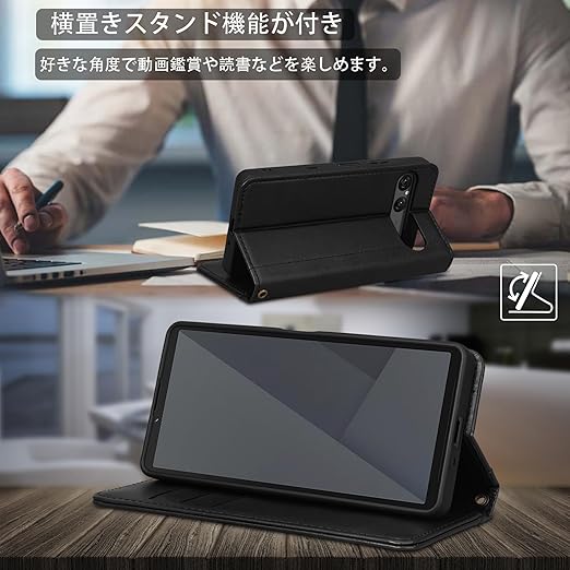 「手帳型ならではの機能が満載」:内側には三つのカード入れと一つのフリーポケットがつき、定期券やカードの収納に優れているXperia10 VII手帳型ケースです。横置きスタンド機能がつき、暇つぶしに楽々動画視聴や読書など楽しめます。