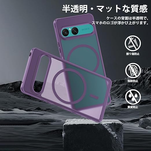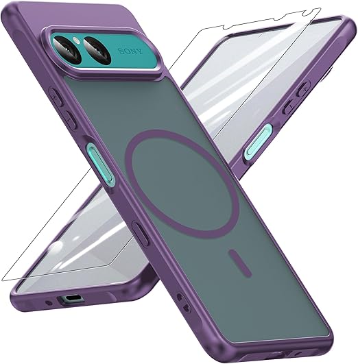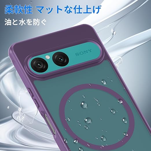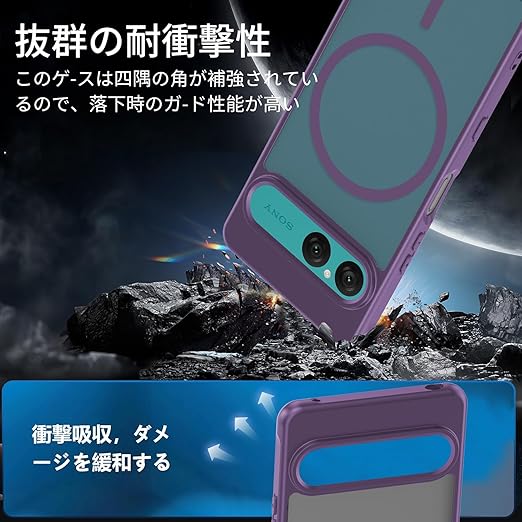 YXHH新登場 Xperia 10 VII 用耐衝撃 ケース(ガラスフィルム付き・MagSafe対応)薄型 耐衝撃 柔らかい手触り半透明 黄ばみなし 指紋防止 衝撃吸収ポケット内蔵 TPU ケース 濃い紫 a