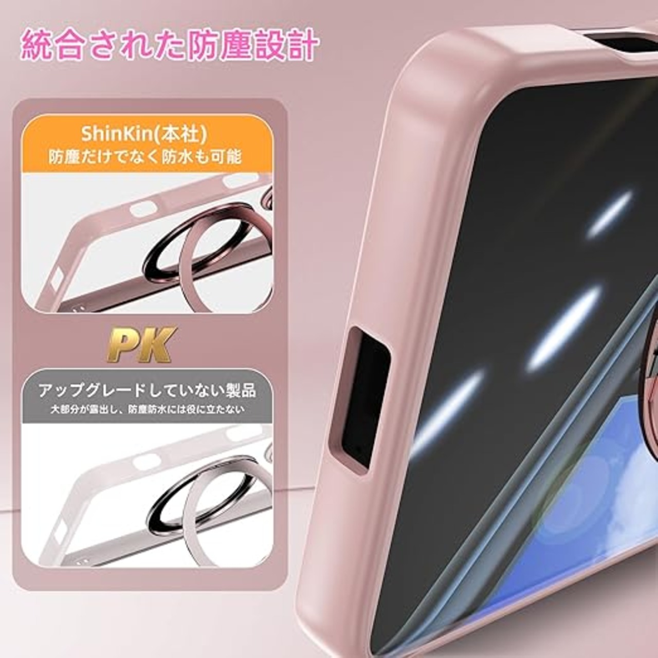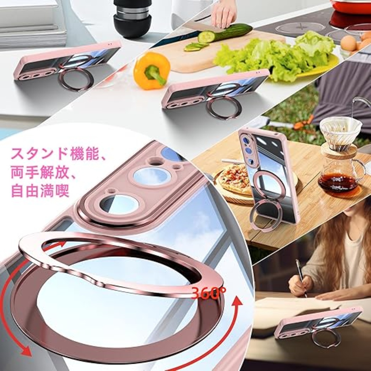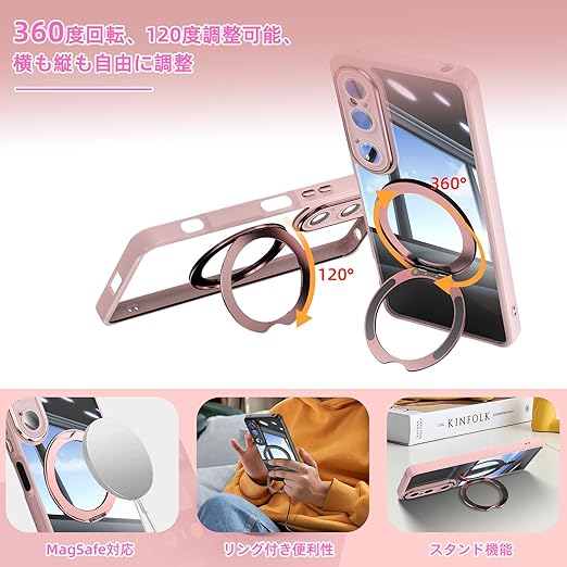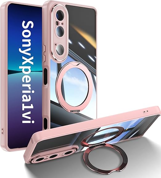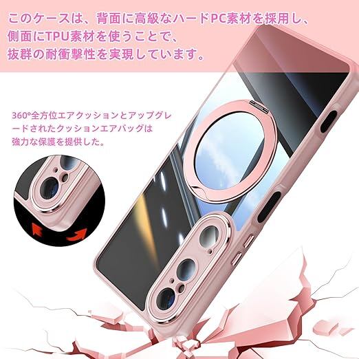 [ShinKin] スマホケース Sony Xperia 1 VI 用 ケース カバー 透明PC + TPU素材 ケース リング付き カバー スタンド機能 スマホケース 透明レンズフィルム保護機能付き 強化された保護 携帯電話のレンズフィルム 軽量 耐衝撃 擦り傷防止 落下防止 車載ホルダー 360°回転 ケース Sony Xperia 1 VI 用 (ピンク) a