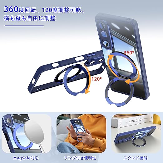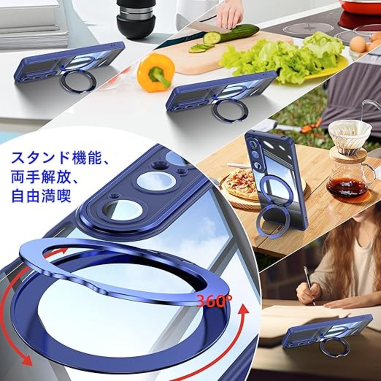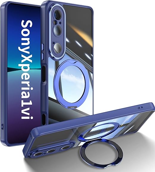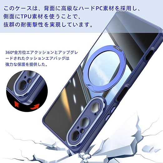 [ShinKin] スマホケース Sony Xperia 1 VI 用 ケース カバー 透明PC + TPU 素材 ケース リング付き カバー スタンド機能 スマホケース 透明レンズフィルム保護機能付き 強化された保護 携帯電話のレンズフィルム 軽量 耐衝撃 擦り傷防止 落下防止 車載ホルダー 360°回転 ケース Sony Xperia 1 VI 用 (ブルー) a