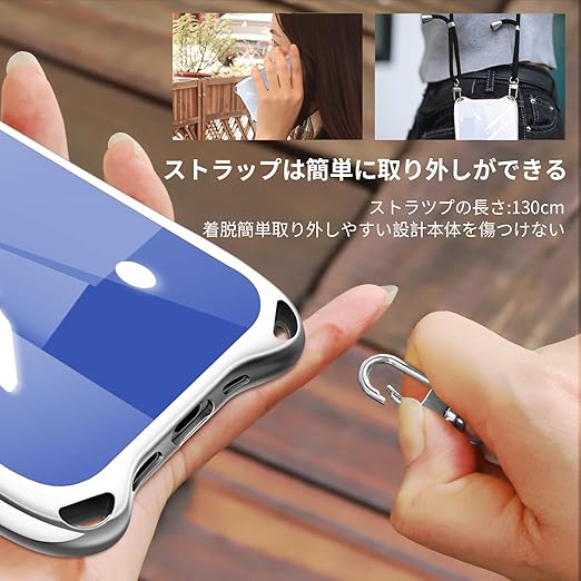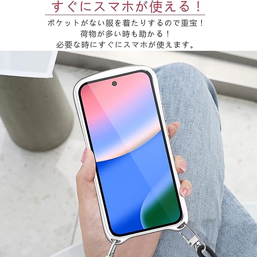 【ネックレスケース】シリコンケースには首から下げられるようにショルダーストラップが付いており、まるでアクセサリーのようにスマホを着用できます。落下防止はもちろん、紛失防止にも役立ちます。 特に旅行や、小さなお子様がいるお母さんにおすすめ、手荷物がある時にスマホを持ち続ける必要がなくなります