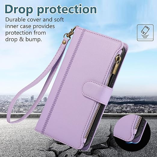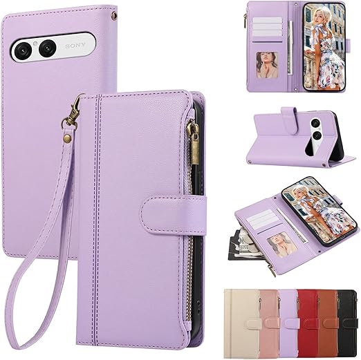 KW-LINK 用の xperia 10 VII ケース 手帳型 エクスぺリア10 Vii ケース 手帳型 小銭入れ ファスナー型 SO-52F 携帯カバー ソニー エクスぺリア10VII 手帳型ケース コインポケット カード収納 財布型 xperia10 vii カバー スタンド機能 マグネット式 SONY xperia10vii スマホケース 同色ストラップ付き 薄型 耐衝撃 - パープル a