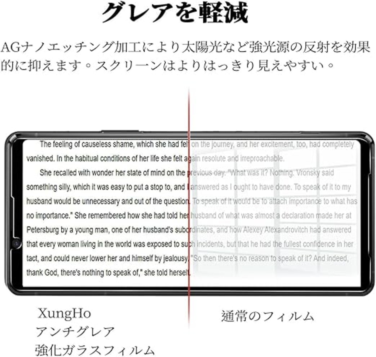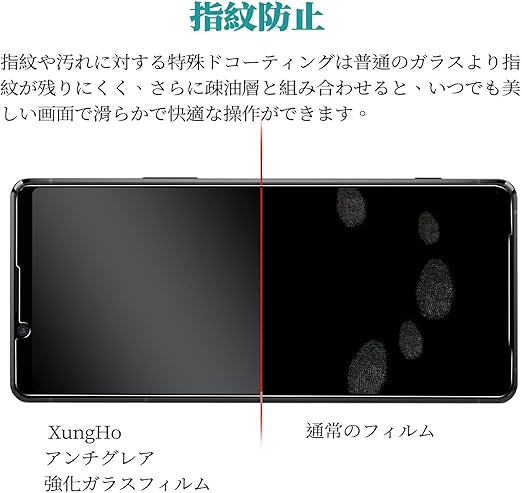 『アンチグレア』XungHo独自の反射防止コーティングの加工で、ディスプレイの表面に太陽光や蛍光灯などの反射を抑えます。視認性を向上させて画面が見えやすくなり、目の負担を軽減できます。更にサラサラ手触りで指紋の跡が残りにくく、指のすべりが滑らかでゲームをするのに適して