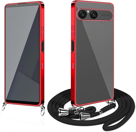 10 VII 用 ケース ショルダー クリア SO-52F スマホケース 透明 TPU カバー ストラップ付き 肩掛け 首掛け 紐付き 斜めがけ 薄型 耐衝撃(レッド) a