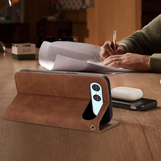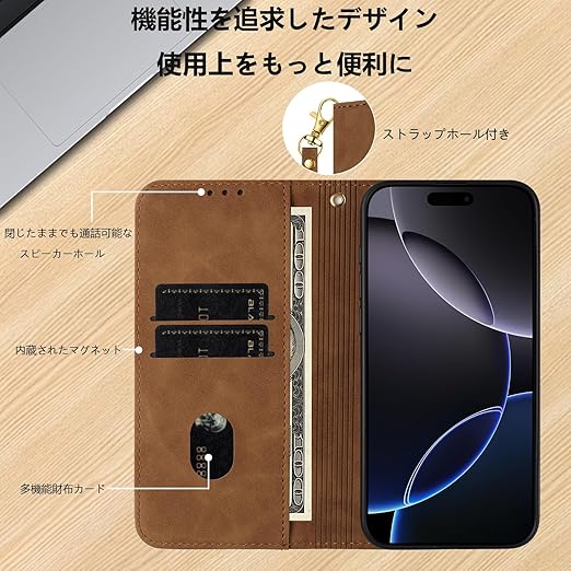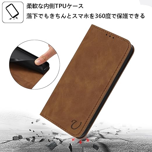 Ugazuisi 兼用 Xperia 10 VII 用の ケース手帳型 同色ストラップ付き 肌触り良いレザー スマホケース マグネット内蔵 全面保護 耐衝撃 耐摩擦 スタンド機能 カードケース 財布型 カード入れ (Xperia 10 VII 対応) ブラウン a