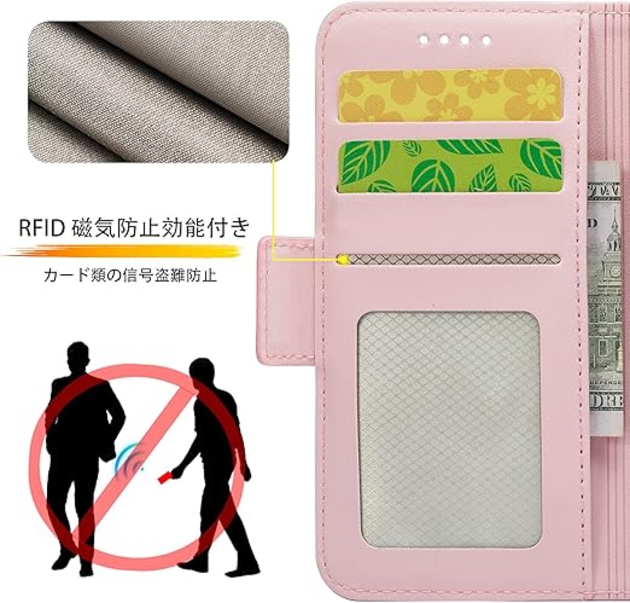 【RFID磁気防止 高品質レザー製】今回はカードポケットにRFID設計加入し、磁気カードを保護するために磁器遮断功能があり、スキミング防止、不正アクセスから大切なカード類の信号盗難防止でご財布をきちんとお守れ、クレジットカード、キャッシュカード、IDカードなどの個人情報を守れる。手帳型外部のカバーは肌感のような素材を採用しており、普通のレザーより、耐熱性と柔軟性を一
