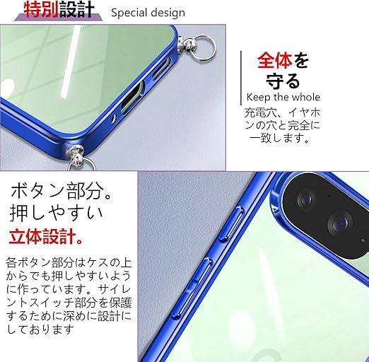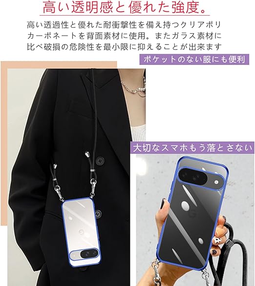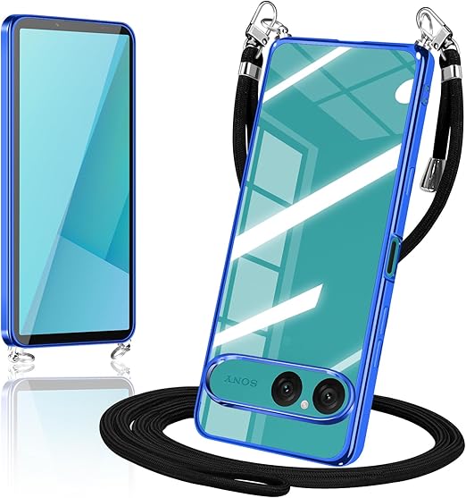 Xperia 10 VII 用の ケース ショルダー クリア 透明 エクスペリア10 vii SO-52F スマホケース カバー xperia10vii 薄型 TPU 肩掛け 首掛け 斜めかけケース 耐衝撃(ブルー) a