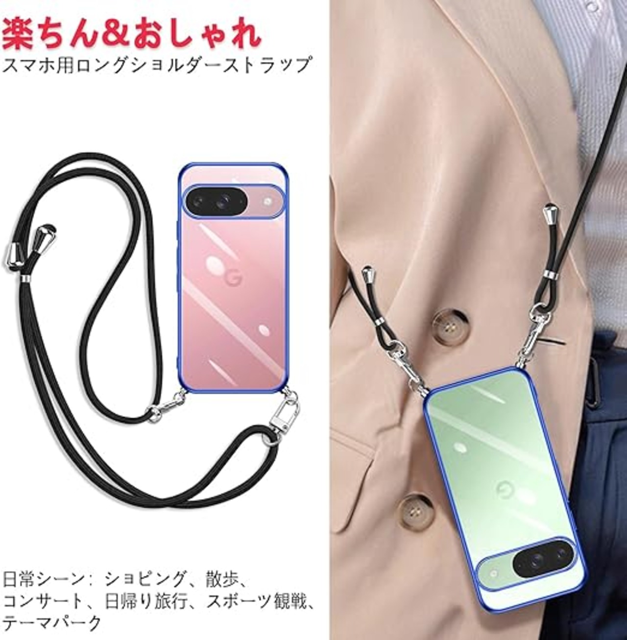 【ネックレスケース】シリコンケースには首から下げられるようにショルダーストラップが付いており、まるでアクセサリーのようにスマホを着用できます。落下防止はもちろん、紛失防止にも役立ちます。 特に旅行や、小さなお子様がいるお母さんにおすすめ、手荷物がある時にスマホを持ち続ける必要がなくなりますし、スマホを落としたり無くしたりといった心配もなくなります、バッグから携帯を取り出す手間がはぶけます。