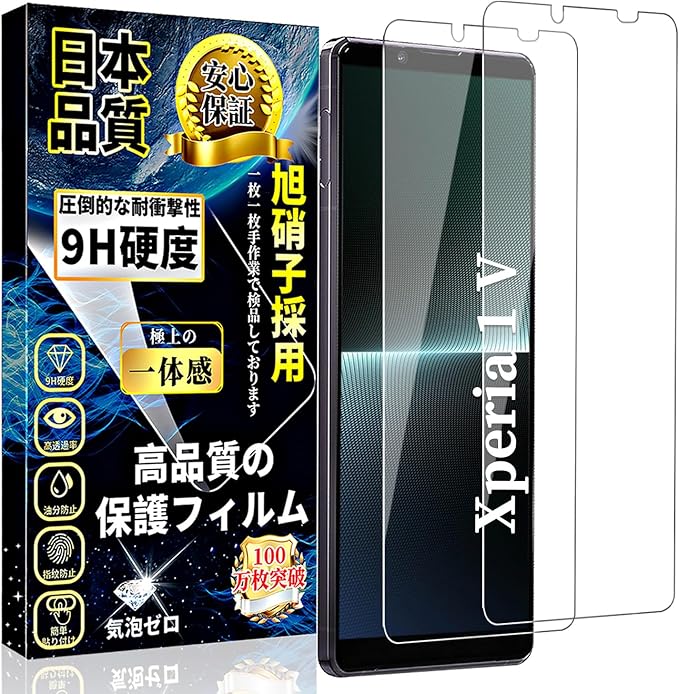 対応 Xperia 1 V ガラスフィルム エクスペリア 1 V 液晶 保護 フィルム Xperia 1 V 強化ガラス 硬度9H 旭硝子素材 耐衝撃 撥水撥油 【2枚セット】 SO-51D SOG10 用 高透過率 気泡なし スクラッチ防止 自動吸着 貼りやすい 指紋防止 飛散防止 a
