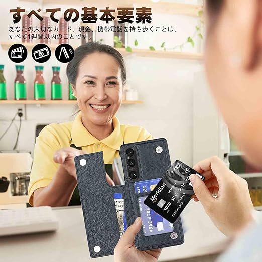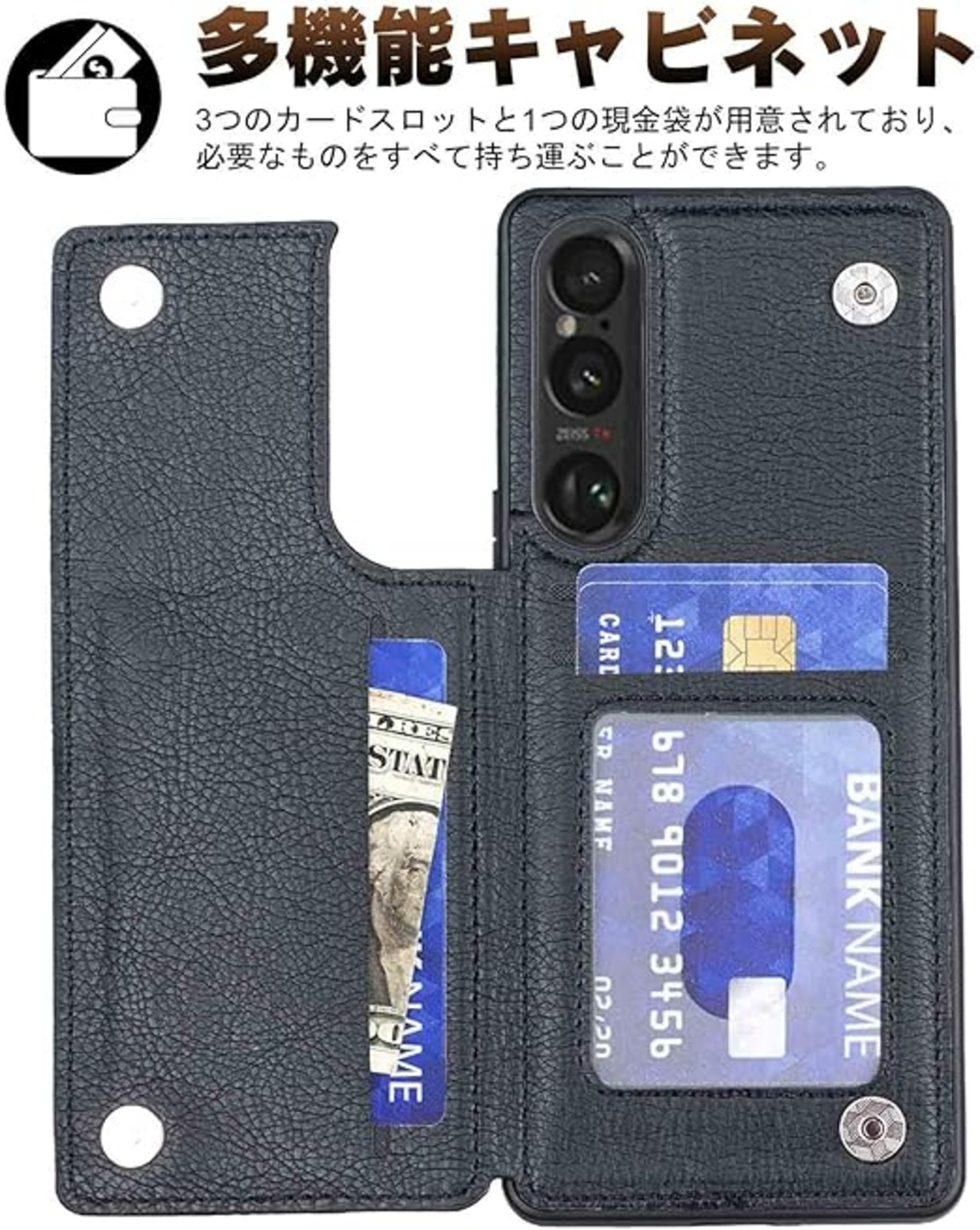 【スマホケース カード収納】このスマホケースには、2つのカードスロットと1つの現金スロットがあり、財布の機能を巧みに組み合わせています。同じ種類の製品と比較して、よりシンプルで軽量な構造になっています。