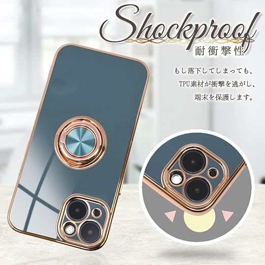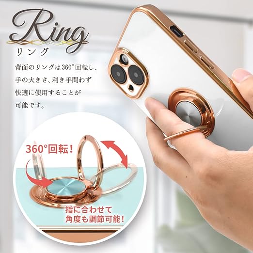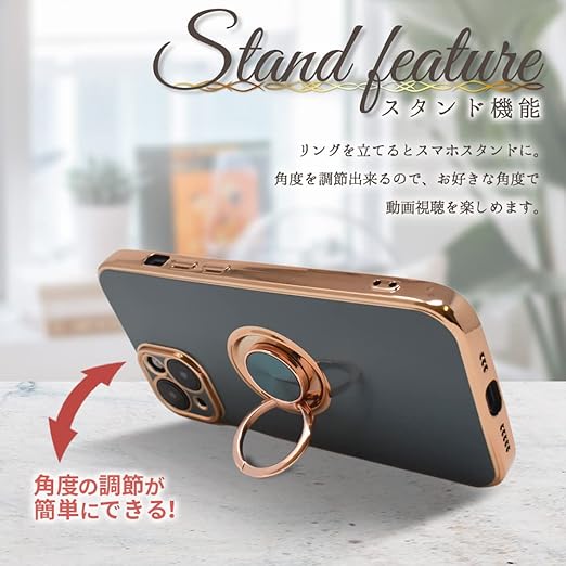 【背面にリング付き】デスクワークや動画視聴に便利、指を通せば落下防止に