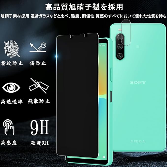【プライバシーフィルム・覗き見防止】xperia 10 iv ガラス保護フィルム 日本製強化ガラスを使用した硬度9Hのガラスフィルムにのぞき見防止機能追加。特別なブラインド加工により、真正面から見ると高透過率ではっきり見えま