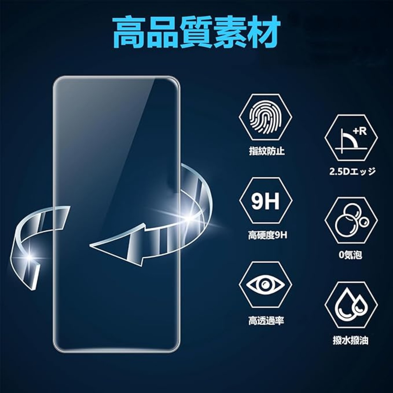【ガラス素材】日本製素材旭硝子製、業界硬度レベル9H以上、高品質な素材で衝撃を緩和し画面の破損を最低限まで抑えます。