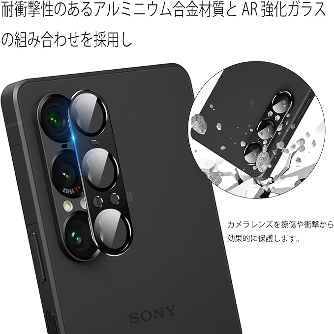 【アルミ合金一体感】アルミニウム合金 + AR 強化ガラスの究極コンビネーション!レンズ部分と完璧にマッチングし、高級感溢れる一体成型デザイン。耐衝撃性能抜群で、Xperia 1 VII のカメラレンズを擦り傷や衝撃からしっかり保護します。