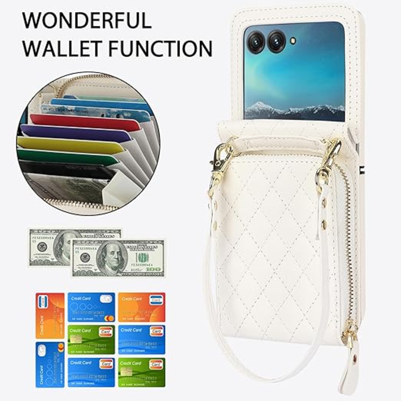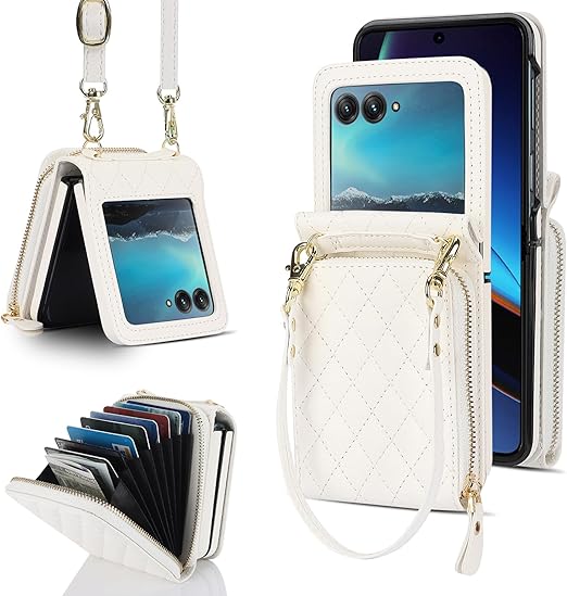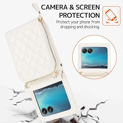 NINKI適応Moto Razr 50 ケース カード収納 ストラップ付き 小銭入れ 人気 おしゃれ 女性用かわいい バンパー ヒンジ保護+PUレザー 擦り傷防止 指紋防止 モトローラ レーザー 50 ケース(ホワイト) a