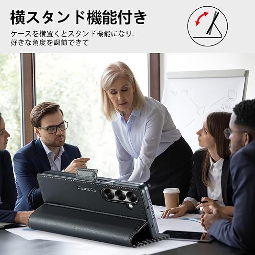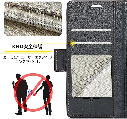 【上品なデザイン】外部のカバーは高品質なPUレザー素材で作られ、素材の表面に手触りは非常に良い、上品で洗練されたデザインです。中身は硬質PC素材で作られて、スマートフォンの全面保護でき、脱着簡単です。【磁気バックル付き】カバーを閉じると勝手にマグネットが着くので手間がかかりません