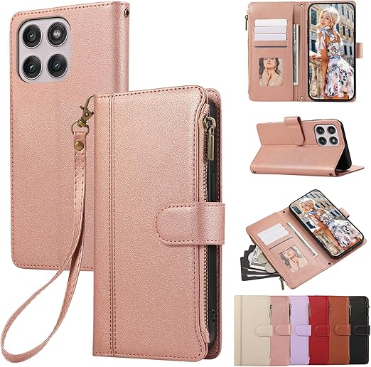 KW-LINK Motorola Edge 60 Pro ケース 手帳型 Motorola Edge 60s Pro ケース 小銭入れ ファスナー型 モトローラ エッジ60S pro 携帯カバー コインポケットカード収納 財布型 エッジ60プロ カバー スタンド機能 マグネット式 モトローラedge60s pro スマホケース 同色ストラップ付き 薄型 耐衝撃 - ローズゴールド a