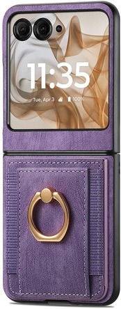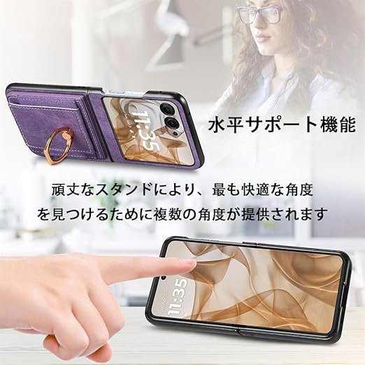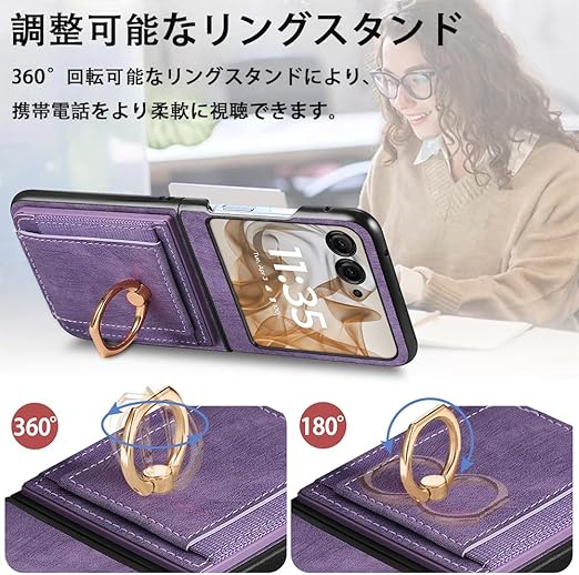For Motorola Razr 60 Ultra/Razr Ultra 2025 ケース 保護カバー【SHANCHI】耐衝撃 カード収納機能 レンズ保護 PU皮革 ケース 指紋防止 (パープル) a