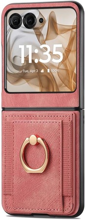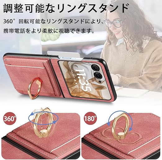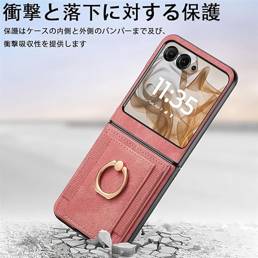 For Motorola Razr 60 Ultra/Razr Ultra 2025 ケース 保護カバー【SHANCHI】耐衝撃 カード収納機能 レンズ保護 PU皮革 ケース 指紋防止 (ピンク) a