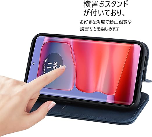 wangChuan ケース 適用Edge 60/60s Pro 60sケース 手帳型 モトローラ エッジ 60/60s Pro スマホケース レザー カード収納 内蔵マグネット式 レトロネイビー a