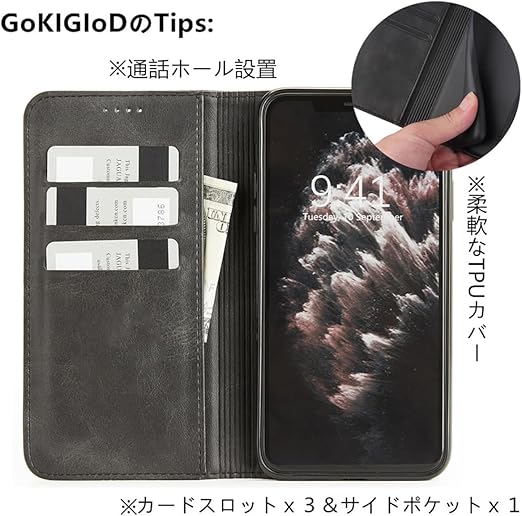 【素材】 表:レトロ感溢れる高品質の合成PUレザー、内:柔らかくて衝撃耐性高いTPUカバー(各機種対応の専門設計)。留め具なしので指への支障も無くなって、一見からするとシンプルなデザインで、汚れにくく落ち着いたレトロの材質を採用され、持ちやすく、使い勝手が良いのです。どんなシーンでも違和感なし、気楽に使えます。