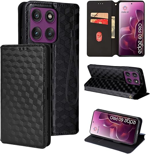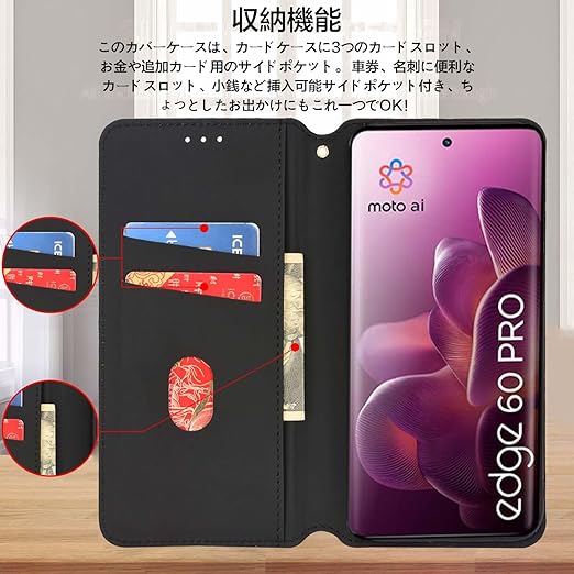 moto edge 60 Pro 5G 用 対応 ケース 手帳型 スマホケース カード収納 スタンド機能 サイドマグネット【HUKWIMO】 全面保護 衝撃吸収 横置き機能 汗や指紋防止 高級PUレザー 擦り傷防止 moto edge 60 Pro 5G 対応 [ブラック] a