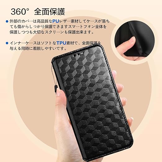 【上質な素材】高品質のPUレザーを採用し、手触りが良く、放熱性も抜群。柔らかいTPUバンパーは取り付け・取り外しが簡単で、スマホ本体への損傷も心配いりません。しっかりとした保護性能を備えています。毎日見るものだから、飽き