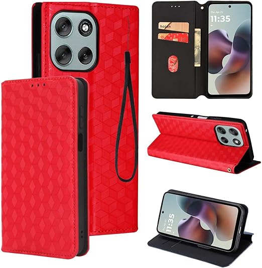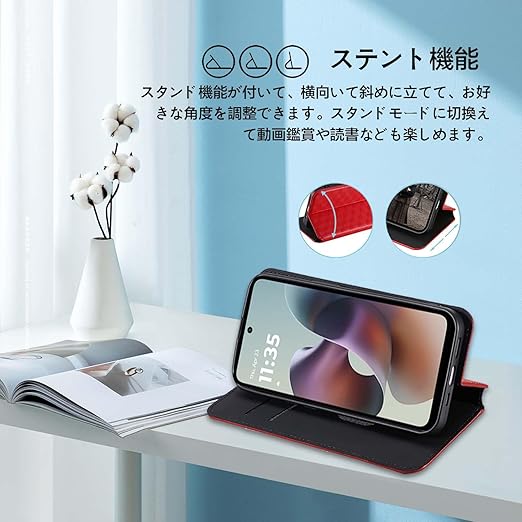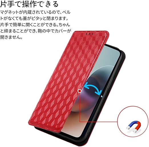moto edge 60 Pro 5G 用 対応 ケース 手帳型 スマホケース カード収納 スタンド機能 サイドマグネット【HUKWIMO】 全面保護 衝撃吸収 横置き機能 汗や指紋防止 高級PUレザー 擦り傷防止 moto edge 60 Pro 5G 対応 [レッド] a