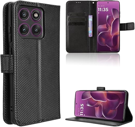 For Motorola Edge 60 Pro/60S Pro ケース 手帳型【BAOLINTX】高級PUレザー 携帯ケース 耐衝撃 軽量 薄型 カード収納 横置き機能 対応 指紋防止 カバー マグネット 全面保護 Motorola Edge 60 Pro/60S Pro カバー (ブラック) a
