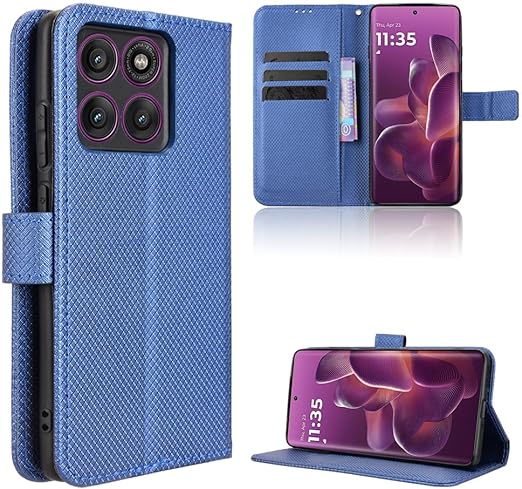 For Motorola Edge 60 Pro/60S Pro ケース 手帳型【BAOLINTX】高級PUレザー 携帯ケース 耐衝撃 軽量 薄型 カード収納 横置き機能 対応 指紋防止 カバー マグネット 全面保護 Motorola Edge 60 Pro/60S Pro カバー (ブルー) a