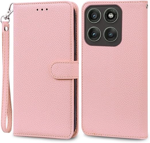 MOTOROLA用 Moto edge 60 pro ケース 手帳型 通用 Moto edge 60s pro SoftBank モトローラ エッジ60プロ SIMフリー 手帳 モト edge60pro edge60spro 携帯カバー 耐衝撃 ストラップ付き 手帳 適用 case Cobeimisr ライチ紋 軽量 カードケース ストラップ スマホケース ピンク a